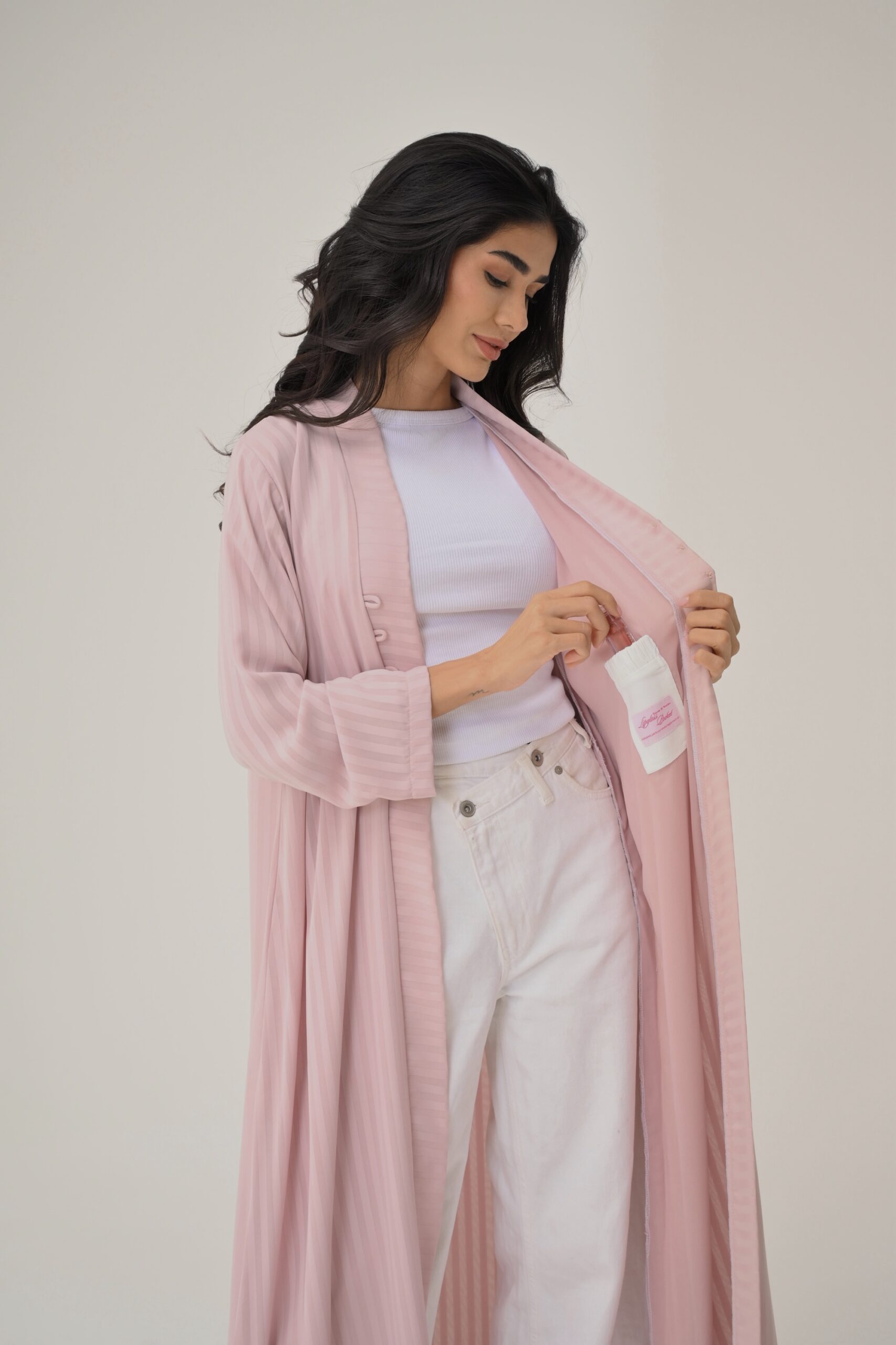 An abaya with nostalgic early 2000s–inspired pockets, designed to hold your lip gloss.
