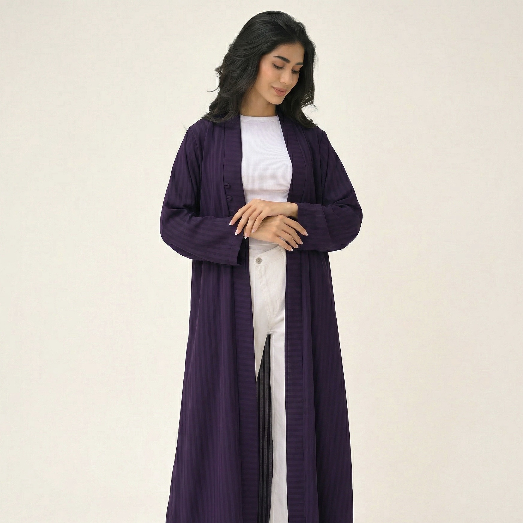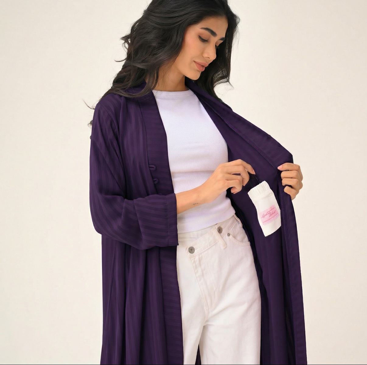 An abaya with nostalgic early 2000s–inspired pockets, designed to hold your lip gloss.