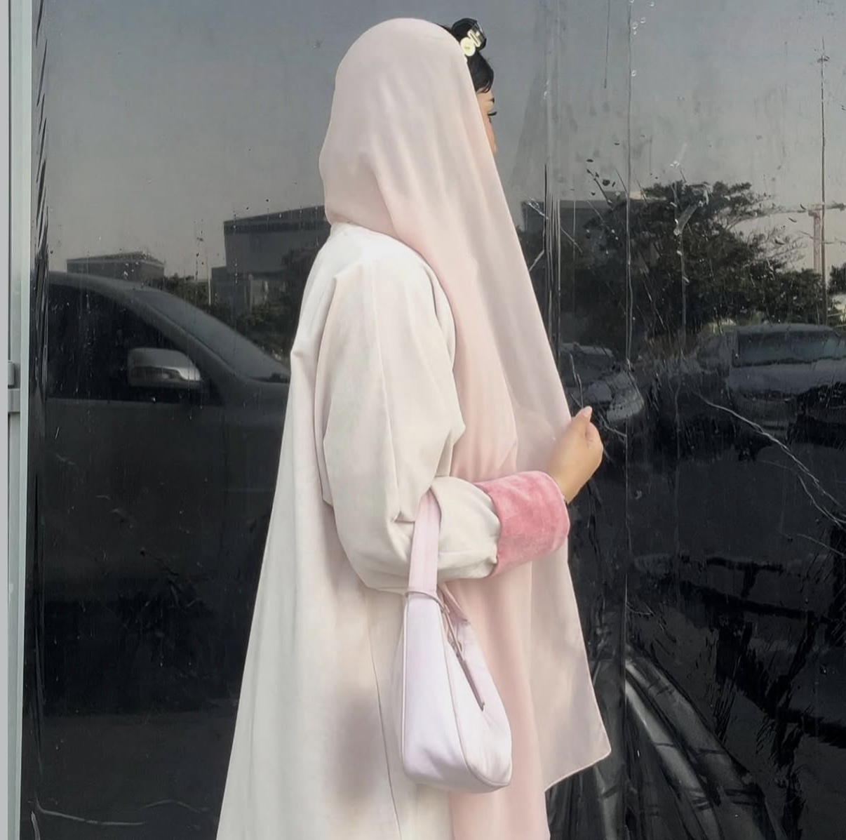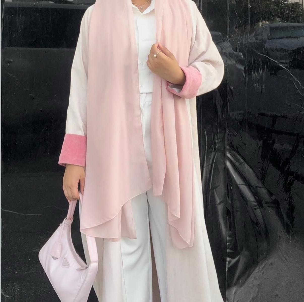 Off white with pink sleeves